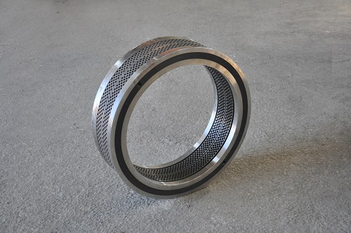 合金結構鋼,如40Cr、35CrMo等,熱處理硬度在50HRC以上,并具有良好的綜合力學性能。由此類材料制造的環(huán)模強度高,耐磨性也好,但缺點是耐腐蝕性不好,特別用在魚飼料、萬壽菊顆粒、木屑顆粒、秸稈顆粒等的噸料環(huán)模,價格比不銹鋼高得多。