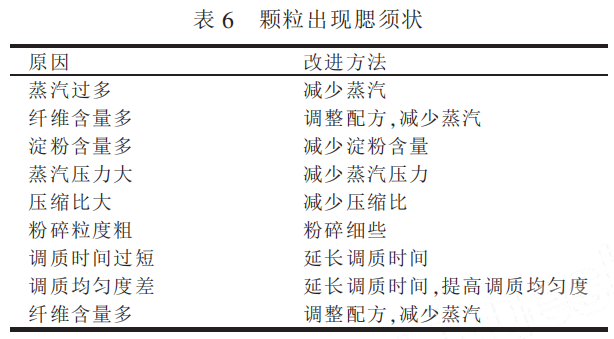 根據(jù)美國(guó)大豆協(xié)會(huì)的研究表明,在顆粒質(zhì)量的影響因素中配方占40%,粉碎粒度占20%,調(diào)質(zhì)效果占20%,制粒過(guò)程控制占15%,冷卻條件占5%。