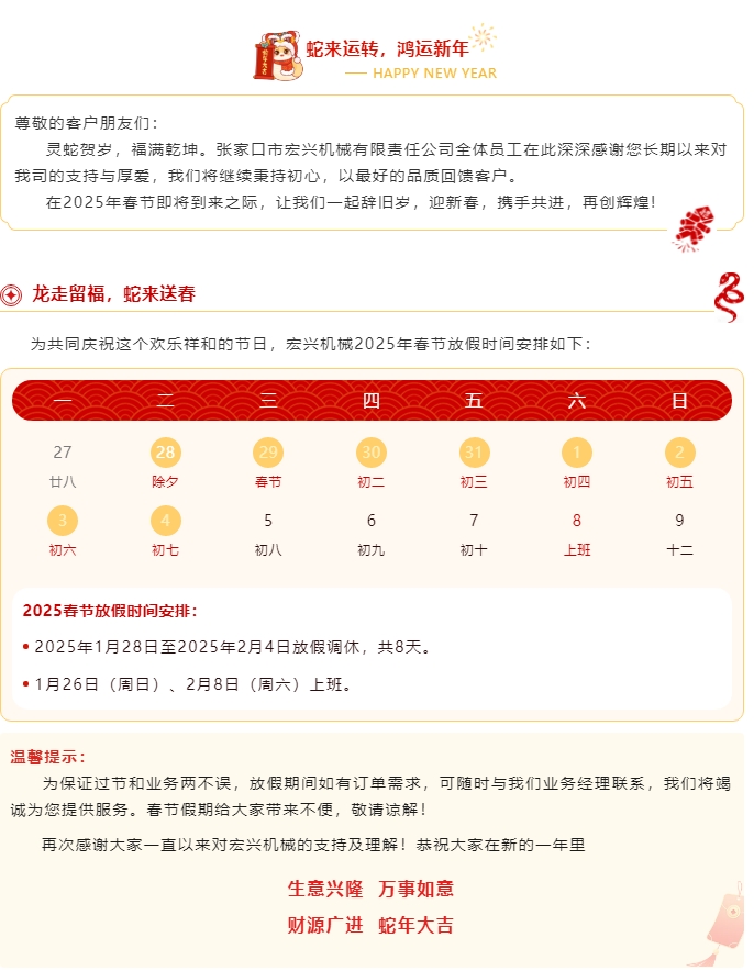 靈蛇賀歲|宏興機(jī)械2025年春節(jié)放假通知
